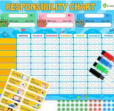 A challenge with homeschooling can be working out a way to separate the learning from everyday home life. Responsibilities within the home can compliment homeschooling programs beautifully for example, tending to pets could be incorporated into humanities, cooking a meal incorporates elements of numeracy and literacy. Personally I've found defining clear expectations beneficial to creating structure and collaboration in the home. Rewards charts are a great way for kids to visually see what they have accomplished and what they are still working toward throughout the day. This also encourages money literacy (if the rewards involve monetary compensation), budgeting and the value of money.